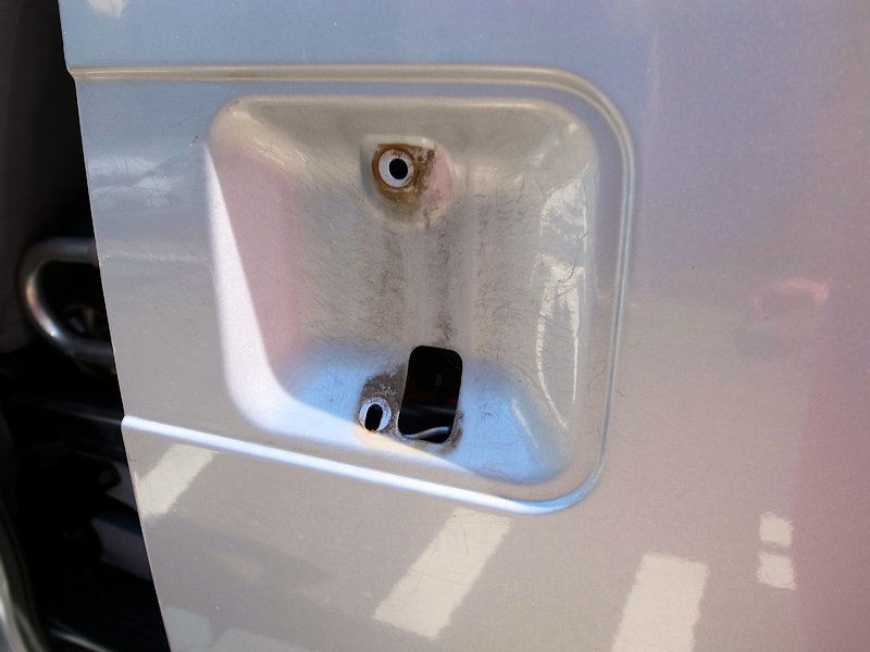 ドアを開けて、上から見ると鉄板が凹んでいます。