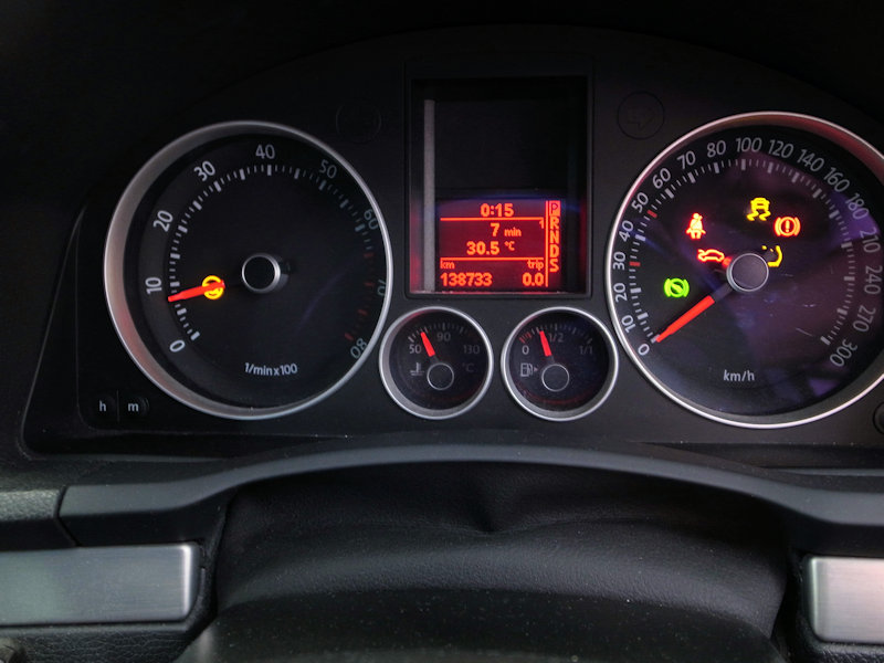 センサーが削れて短絡すると、メーター内にランプが点きます。