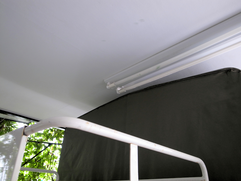 交換したLEDの管は曲がり天井には幌の跡。(;_;)