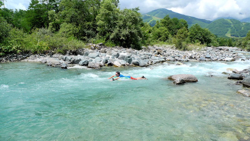 お日様が出ていれば、子供をさておき私が川泳ぎ。