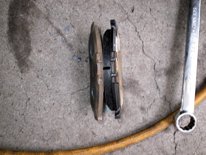 右が新品で、左の古いパットは、もはやカスカスで残量が見えません。