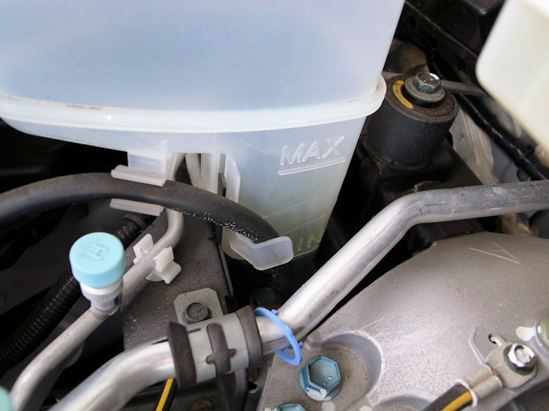 さっそく点検整備を始めますが、先ずは冷却水のタンクが空っぽ。