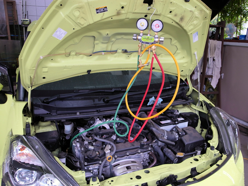 こちらのお車にも、エアコンの機能向上剤を点滴。