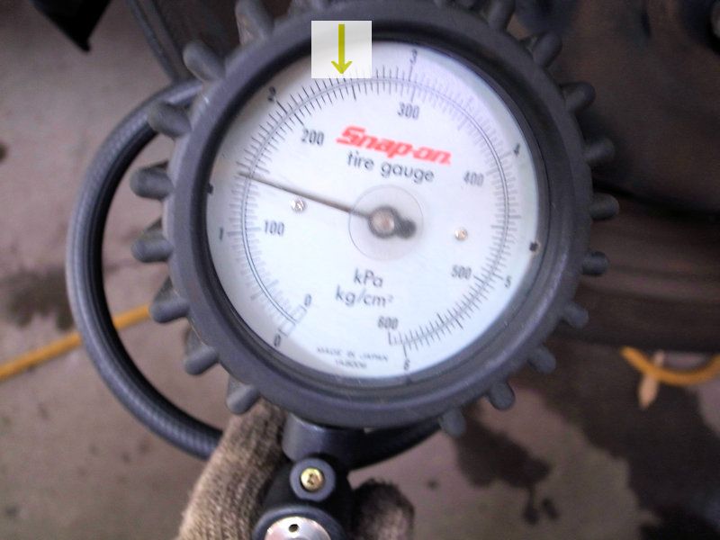 実際に計ってみると、規定圧の半分ぐらいしか有りません。(-_-;)