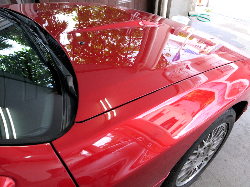 最後の洗車時に、水玉がルビーの様で綺麗でした。