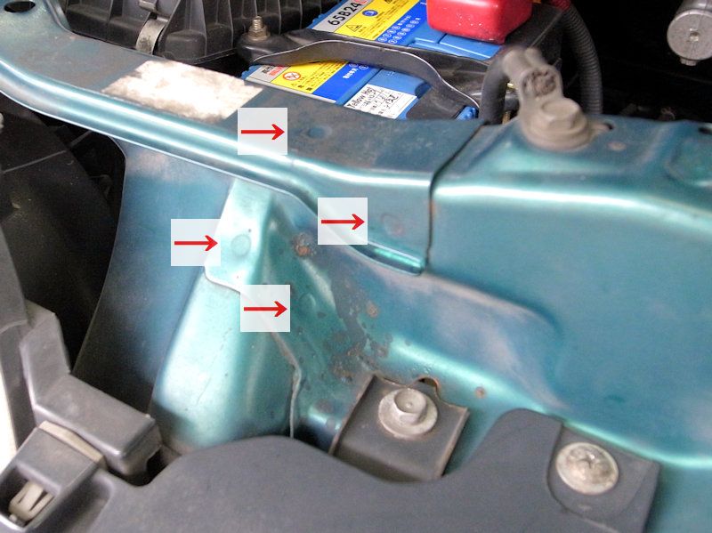 補助的な部分で、矢印の様なスポット溶接で固定されている鉄板です。