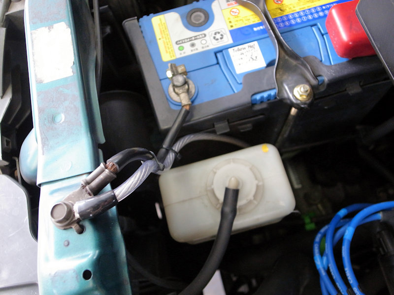 次にエンジンルームに移動し、気になっていた配線をイタズラします。
