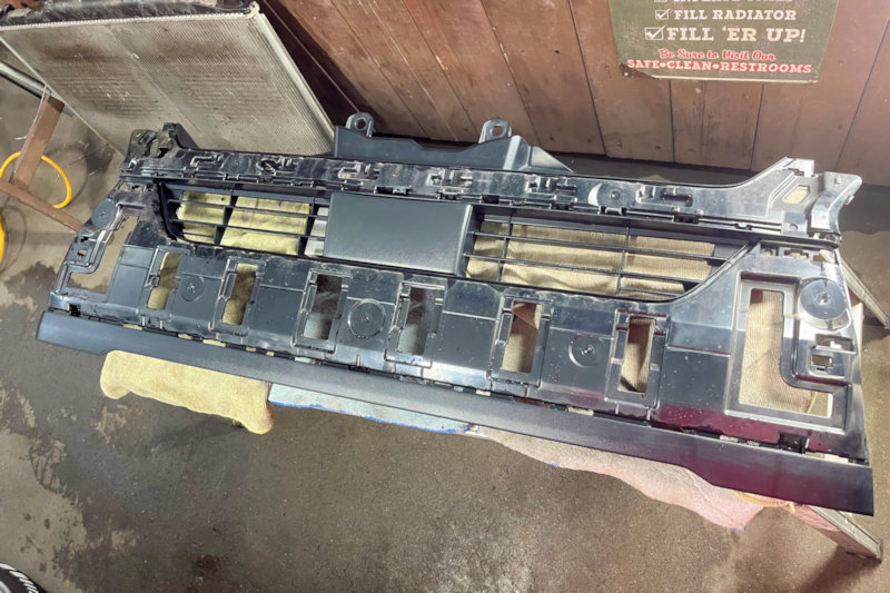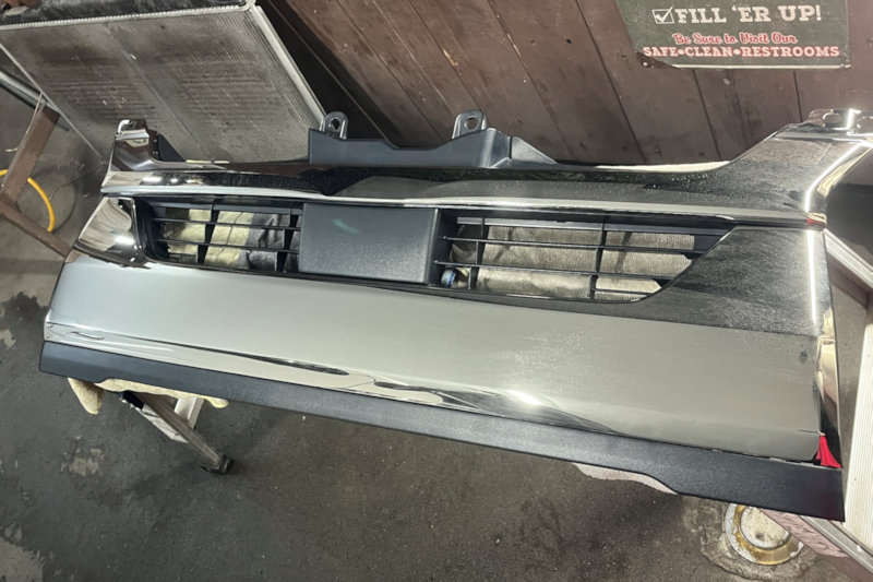 グリルを外して、飛び石の傷の付いたメッキ部品の交換。