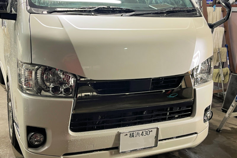 #ハイエースの塗装 #社外ボンネット