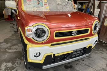 今度は、撥水剤がボディーに付かないように、マスキングして施工。