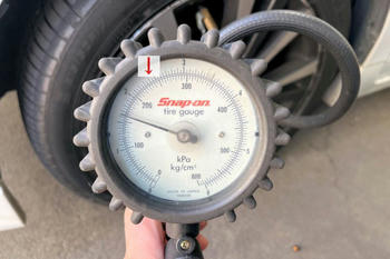 お車を引き取りに来られる前に、タイヤのエアーチェック。