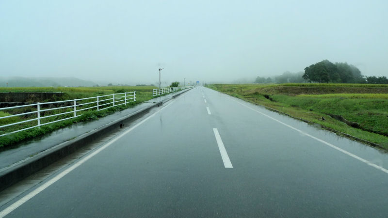 ところが八ヶ岳の辺りから雨は次第に上がり、道も所々乾いてきています。
