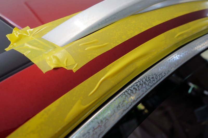 伸びるので曲面貼りも綺麗に貼れて、ペーパーで水研ぎしても