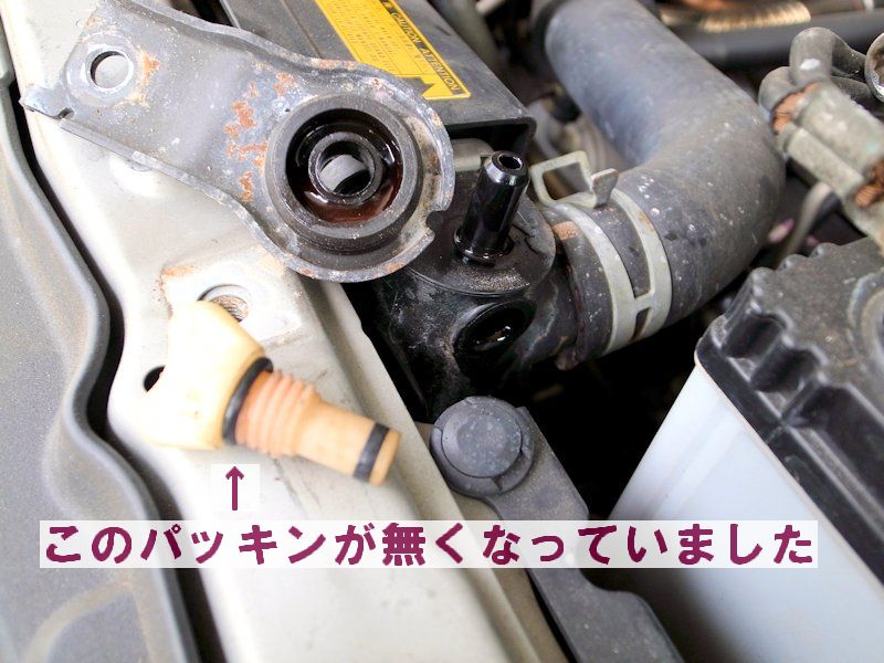 エンジンが暖まると圧が上がり、僅かずつですが蒸気状になった冷却水が隙間から漏れ出てきます。