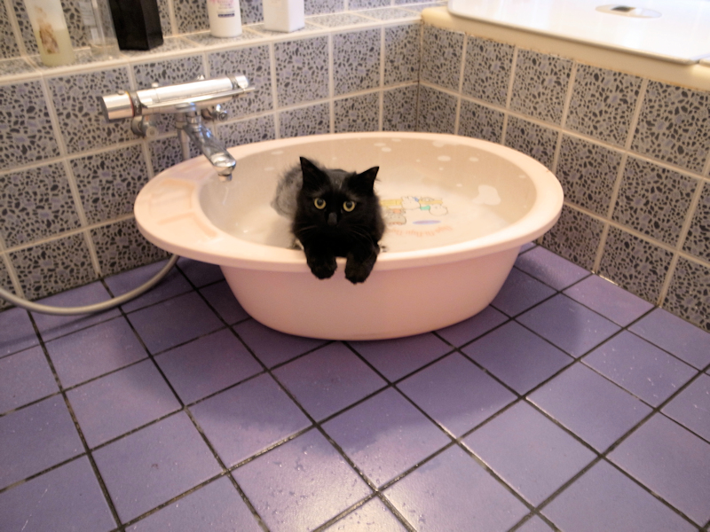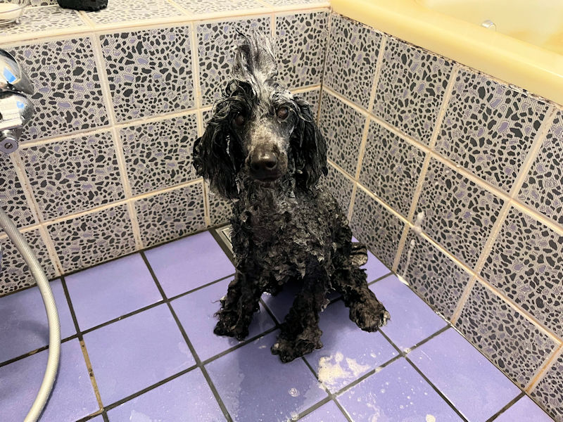 キャビィを、私がついでに全身シャンプーをしてやりました。