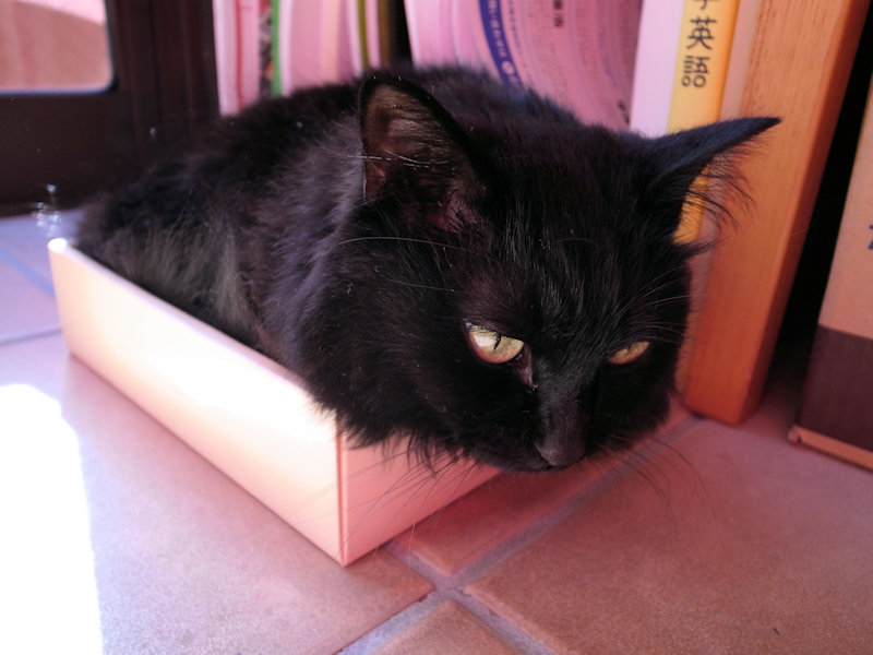今日も普段は入らない小さな箱に入って、じっと俯いていました。(^^;)