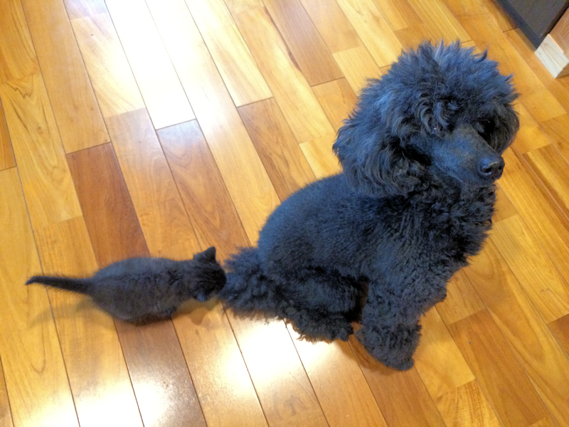 今朝奥さんが犬の散歩に出た時に、草むらから子猫の鳴き声が