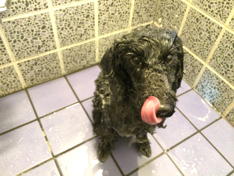 愛犬キャビィのシャンプーをしようとお風呂場に。