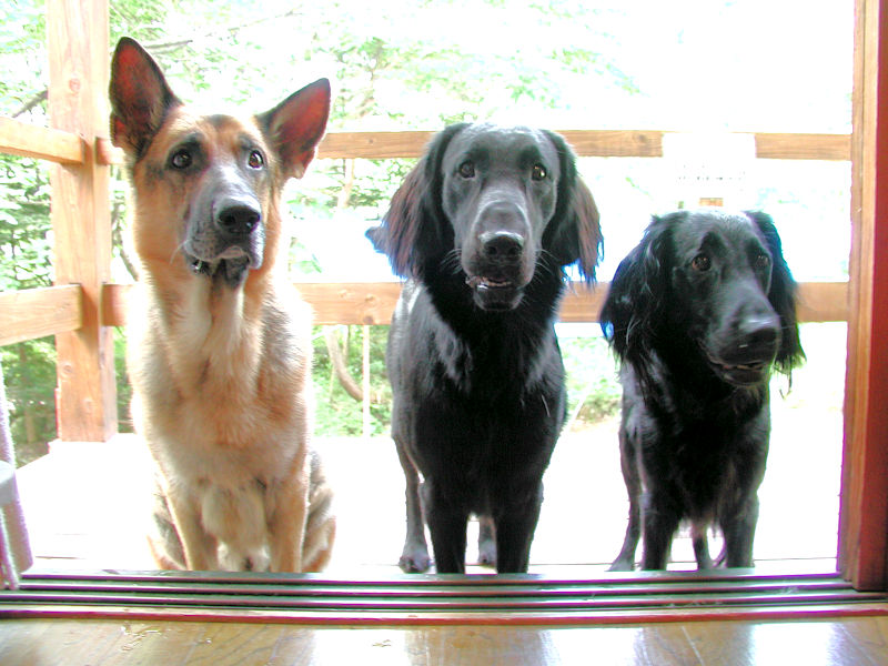 犬3匹に猫2匹も、涼しい部屋に避難。
