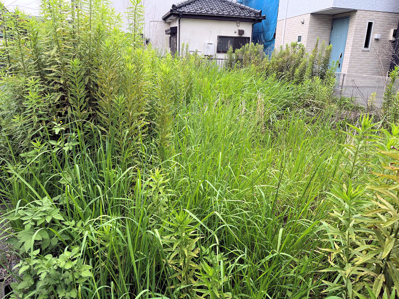 背丈ぐらいの雑草が生い茂っており、探すのが困難。