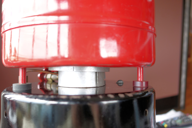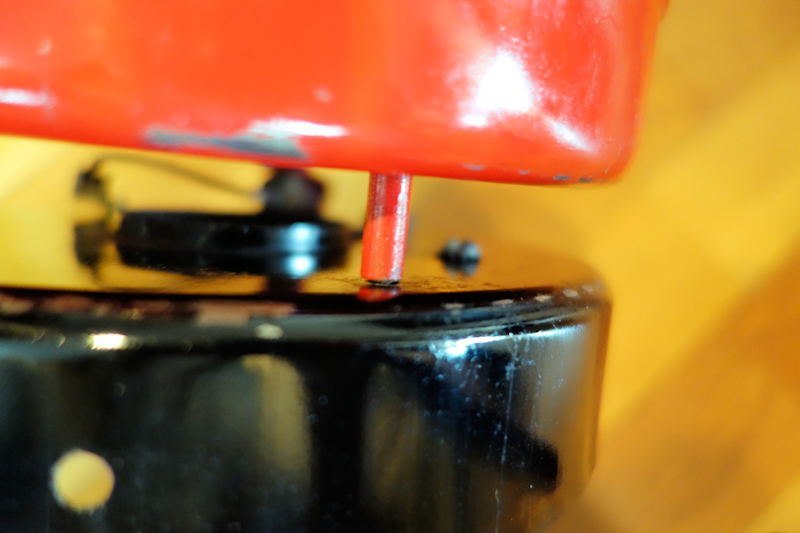 赤いのは燃料タンクで黒いのはシェードの傘です。