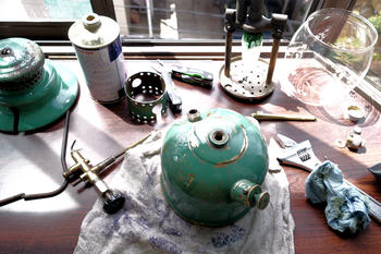 昨日届いたランタンをメンテナンスしています~