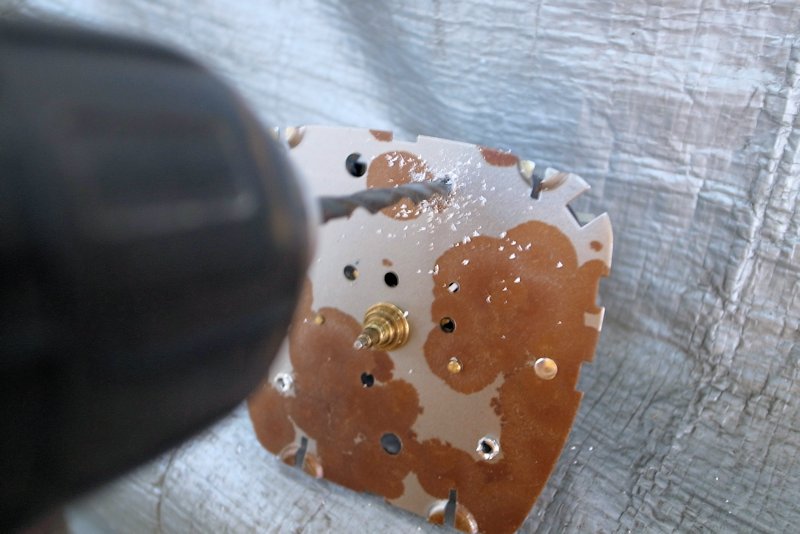 かしめてある箇所を、ドリルでガリガリと適当に削り取ります。