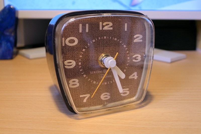 古いゼネラル・エレクトリック社の時計で、コンセントで動くタイプです。