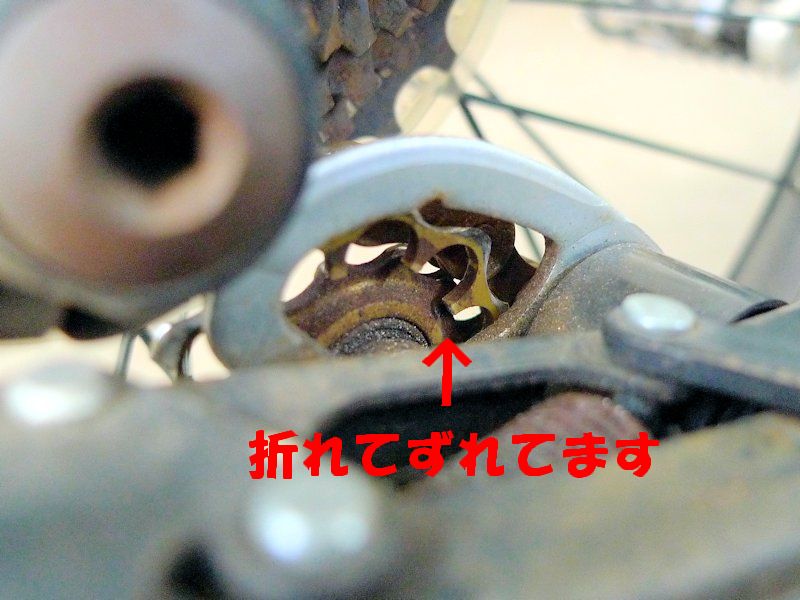 歯車の山が折れて、チェーンが外れたままで使っていた様です。