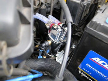ホースの直径が合わず、片方は大気放出状態になっています。