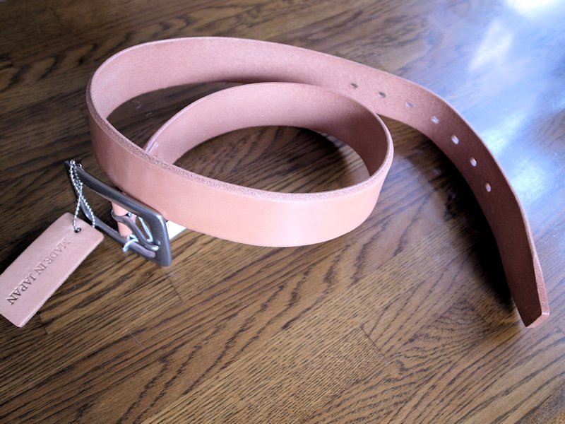 今までのベルトより厚みがあり、馴染んでくるとだんだんと飴色に変わってきます。