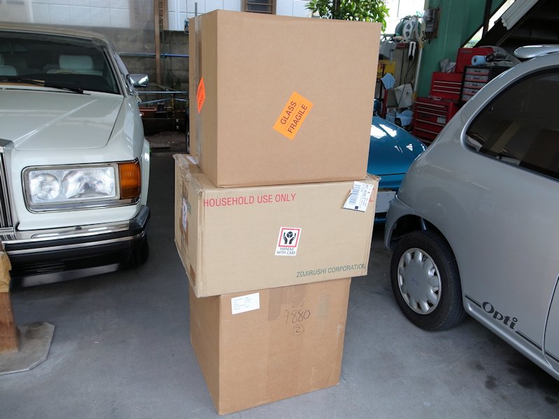 さて、窓越しに大きな段ボール箱が映っていますね~。