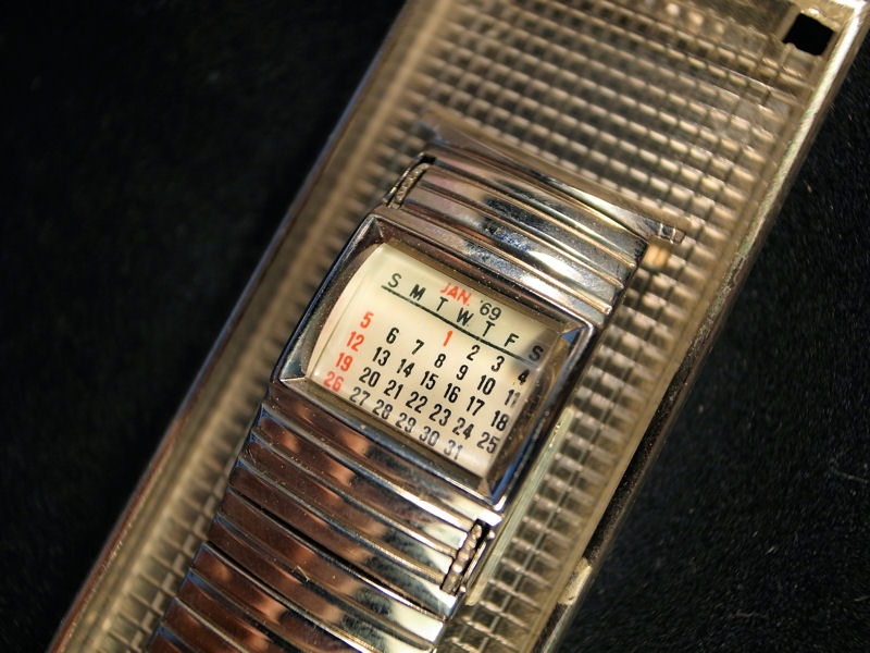 カレンダーの上下のベルト部にダイヤルが付いていて、これを回すと
