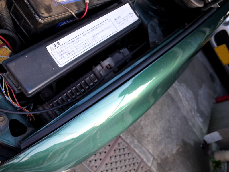 取り敢えず、ボンネットとフェンダーの隙間を埋めるように張ってみました。