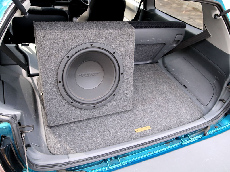 オーディオ本体はトランク内にあります。写真のウーハーボックスは自作した物で、