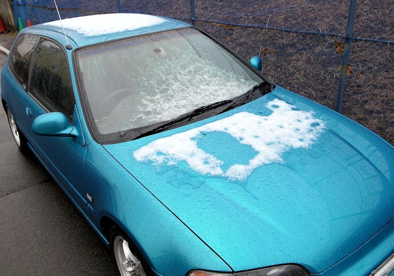 お客様の所に止めさせていただいた私の車には、うっすらと雪が残っていました。