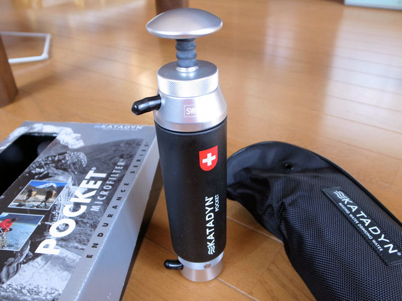 スイス製のポケット浄水器です。小さいペットボトル飲料ぐらいの大きさで