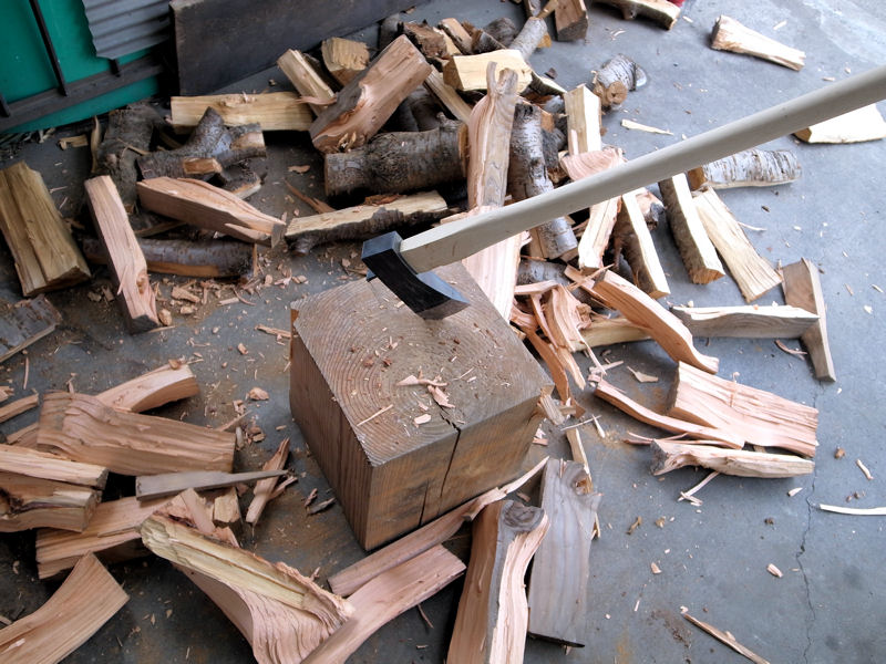使っているので、お皿や飲み物などは薪にする角材などに置いています。