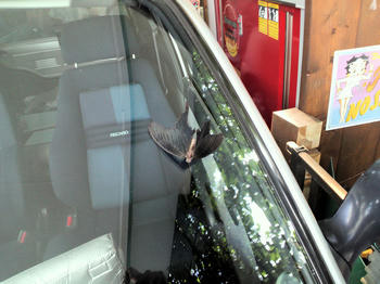 パッタリと姿を見せなくなった、例のクロアゲハ蝶が車の上で息絶えたいました。