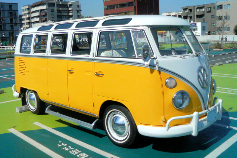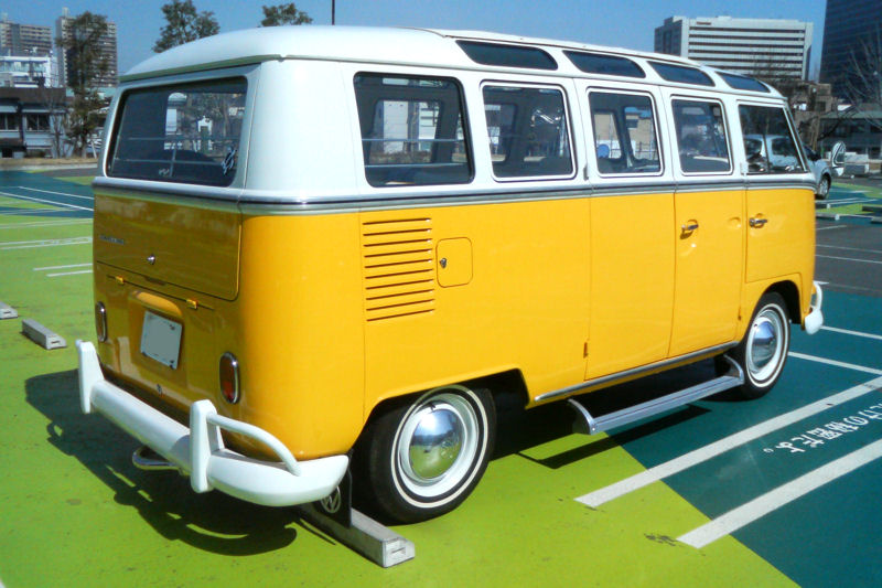 駐車場にしっかりオーバーホールされたワーゲンバスがありました。思わずパチリ!