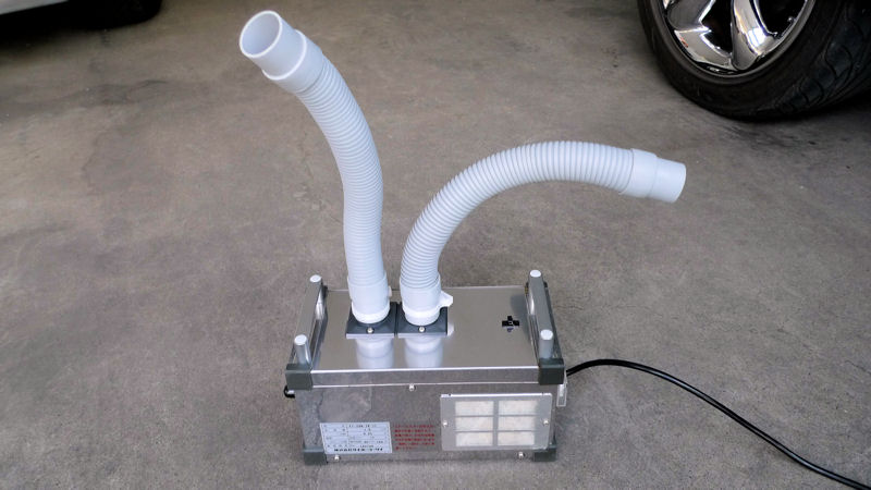 スイッチを入れると、ホースの先から霧状の細かいミストがでます。