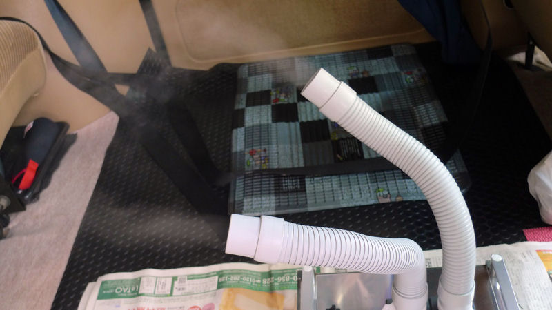 これを車内に置きタイマーを掛けて放置します。この時エアコンを送風状態にしておけば