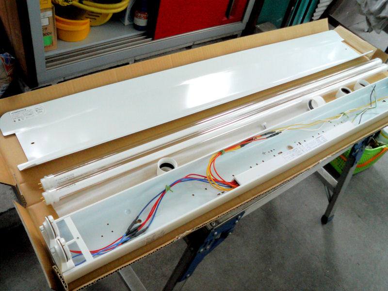 作業場の側面に付けていた、エコ蛍光灯を1本⇒2本に増やすことにしました。
