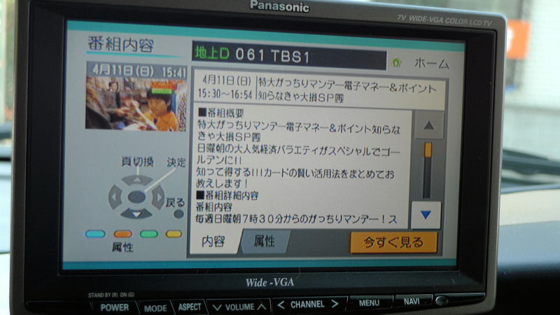 取りつけも終わり無事地デジを受信。う~ん、やっぱり綺麗な画像。