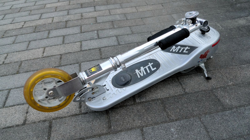 電動キックボードは、電源を入れずに漕ぐとモーターの抵抗でかなり重い。