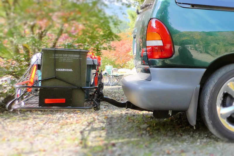 そこでヒッチキャリアを購入。先のヒッチメンバーに差し込むと荷物を積む事が