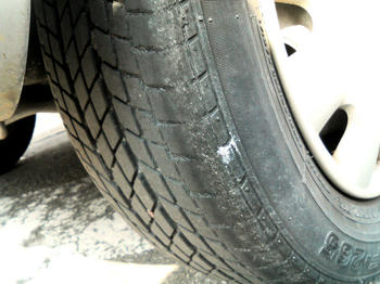 タイヤを見ると溝が浅く危険!