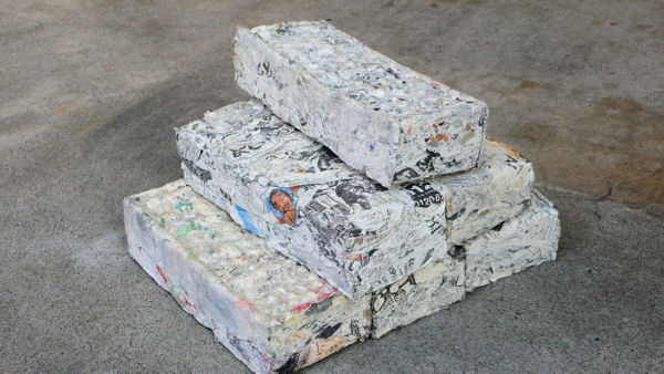 プレスして取り出すと新聞紙のブロックが出来ます。