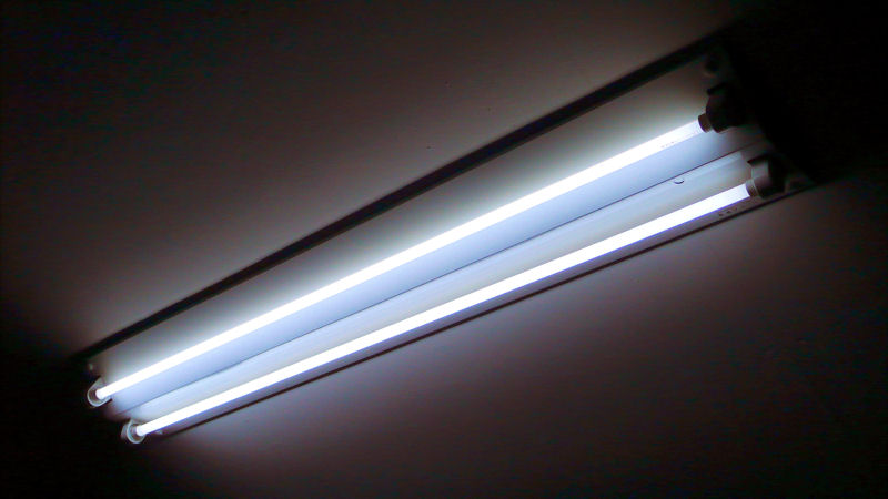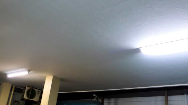 作業場の蛍光灯を、同じ電力で何倍モノ明るさになる蛍光灯に入れ替え、