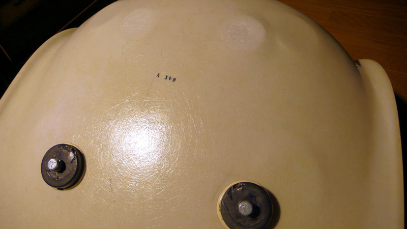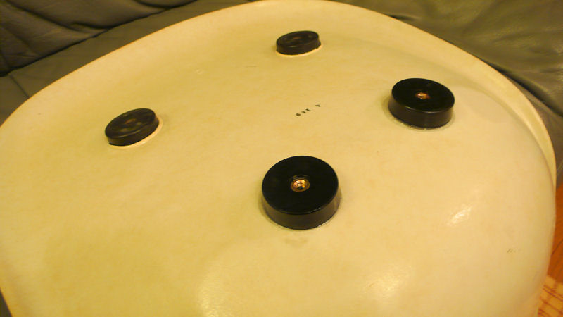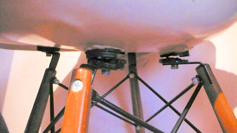 裏を覗いてみると、ベース(脚)と椅子を繋いでいるゴムのクッションがちぎれています。